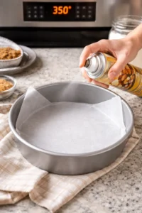 1. Preheat your oven to 350°F (175°C) and prepare a cake pan with parchment or grease.